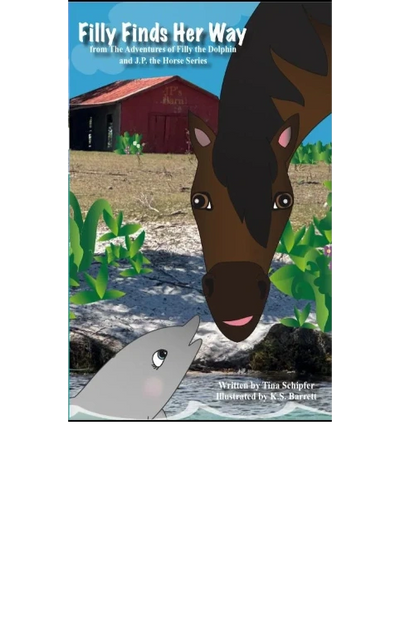 The first book is called Filly Finds Her Way. Filly is born in Tampa Bay and then begins exploring with her Mama, and her Titi (aunt) Lee. They come across a horse on the bank of the Alafia River and a lasting friendship is formed (you will find out how Filly gets her name, too). The horse’s name is J.P., and the book ends with Filly and Tipper (another baby dolphin she meets) wanting to know what J.P. means. "That, my little dolphin friends, is a story for another day."